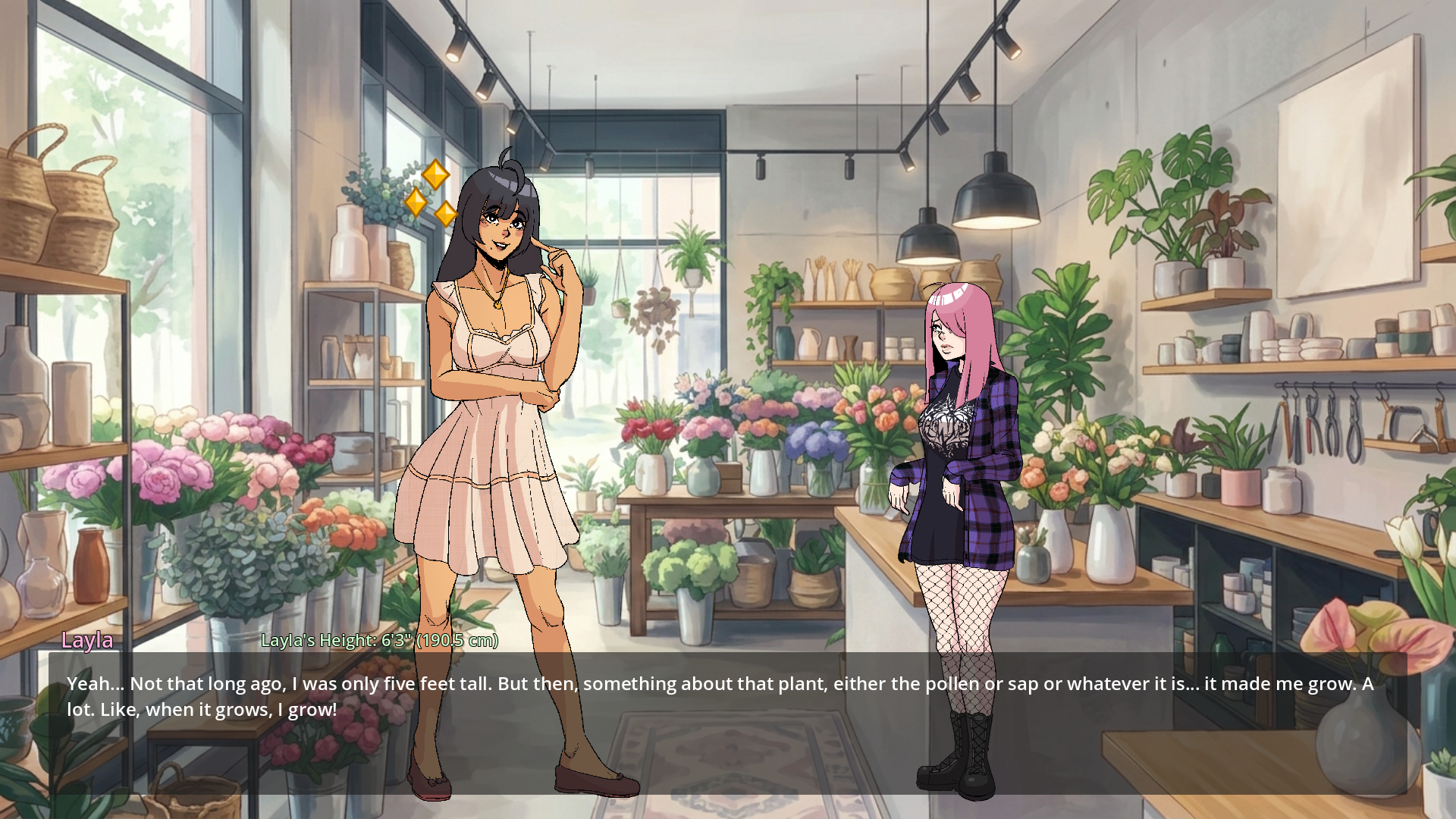 Your girlfriend Layla wants to be taller and so she sets off to find a way to grow bigger. In doing so, she finds a strange plant. When it grows, so does she. You may be able to even find new ways to take care of it and unlock even more potential and new effects out of this strange plant.